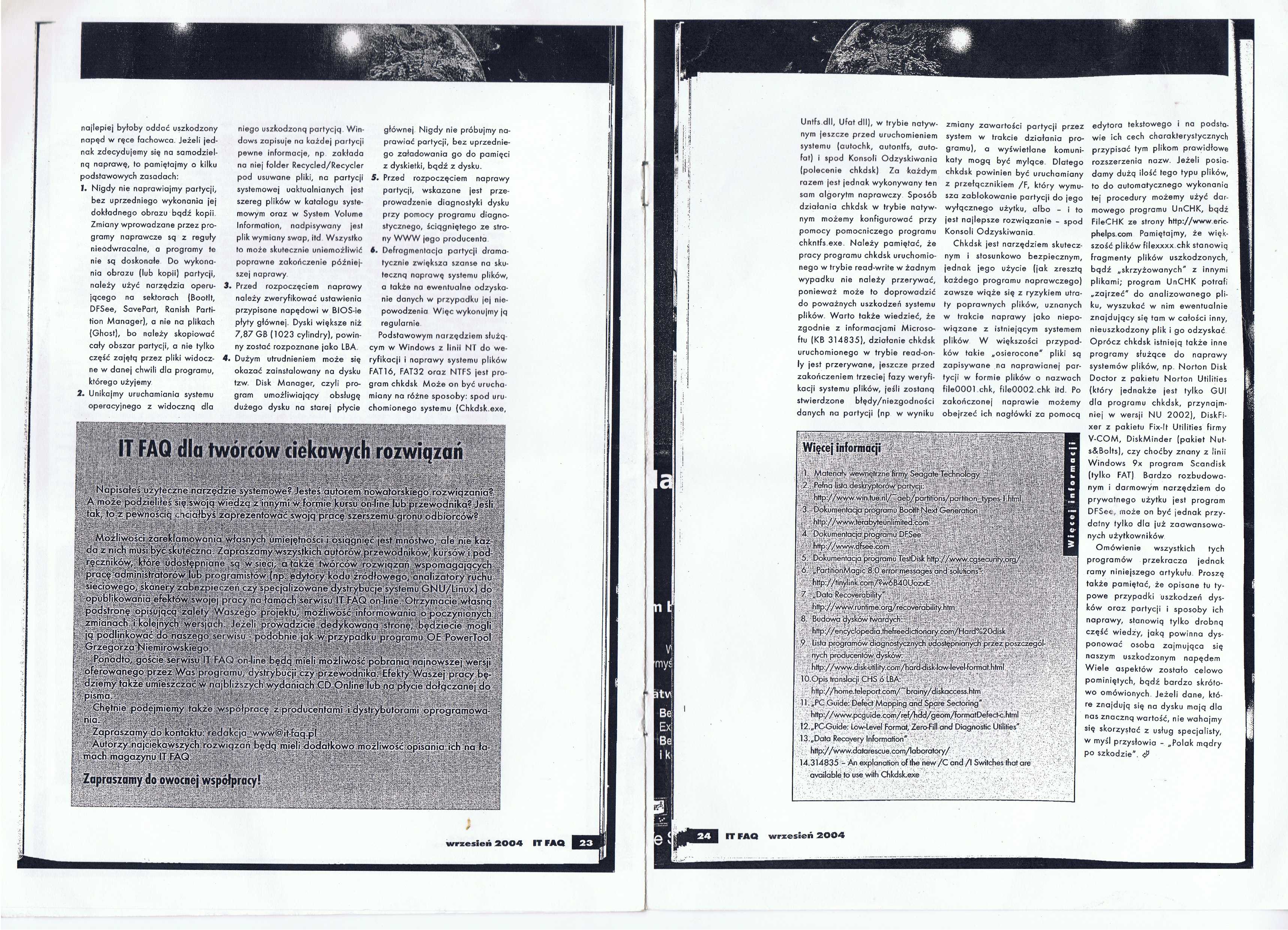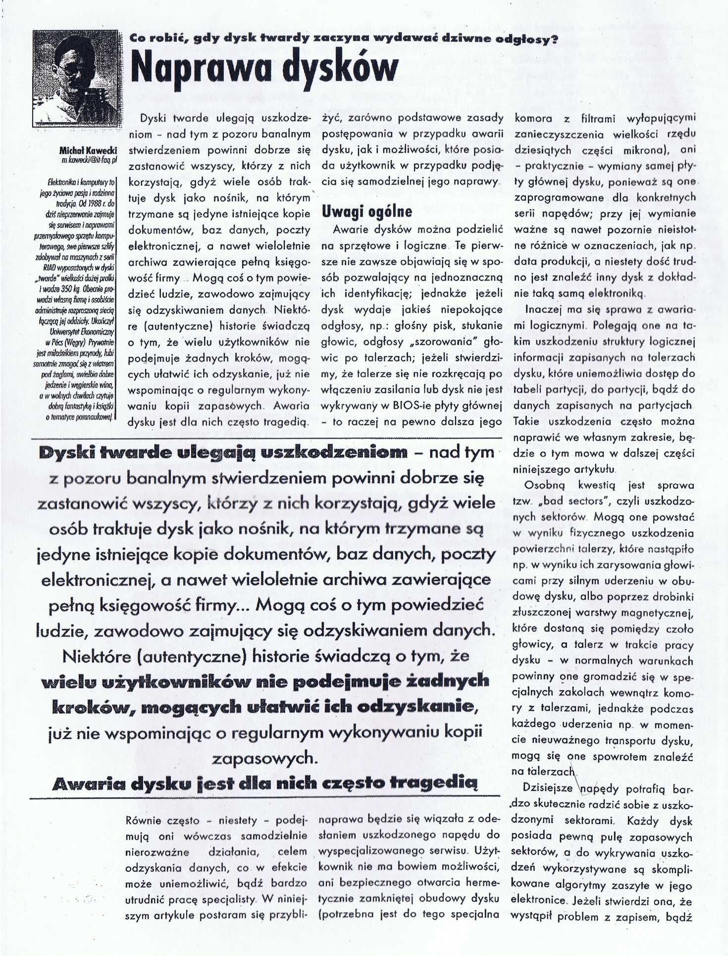 Bez kategorii Naprawa dysków twardych by root • 12 czerwca 2010 • 0 Comments Artykuł z IT FAQ wrzesień 2004. Autor: Michał Kawecki strona 1 strony 2-3 strony 4-5 strony 6-7 strony 8-9